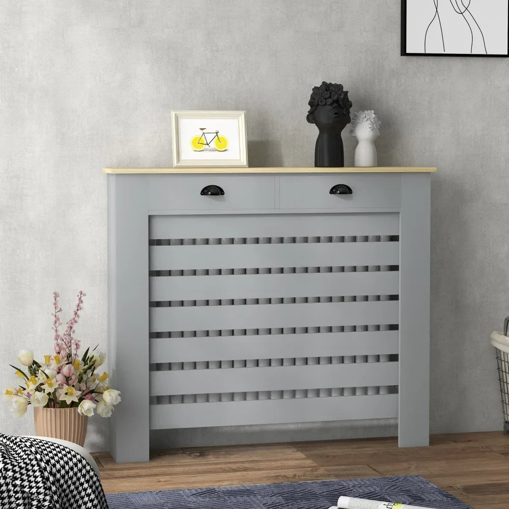Radiator Cover - Grey, Slatted Design | Safely Conceals Heat