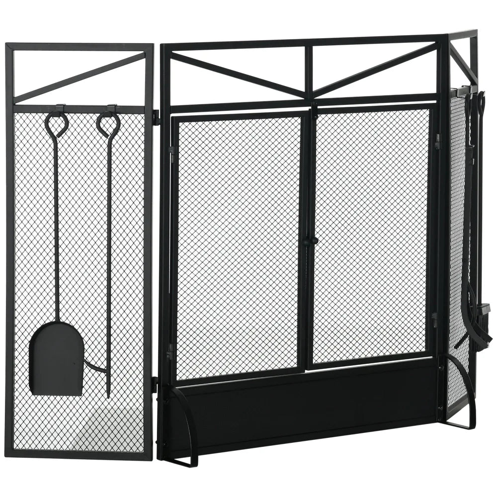 Fireplace Screen – 3 Panel, Metal | Easy Wood Access & Fire Viewing