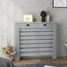 A safe and stylish addition for the home—this slim radiator cover. Made from a durable blend of MDF and particle board, it comes in a slatted design to allow the heat to escape: keeps your space warm and cosy whilst protecting you from directly touching the radiator for safety. Heating cover is complete with a handy top drawer for storage.