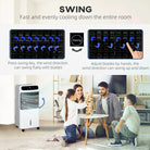 - Triple-mode functionality: Provides ventilation, ice coolingand humidification with a 60° oscillation to cover a broad area using the portable air conditioner.