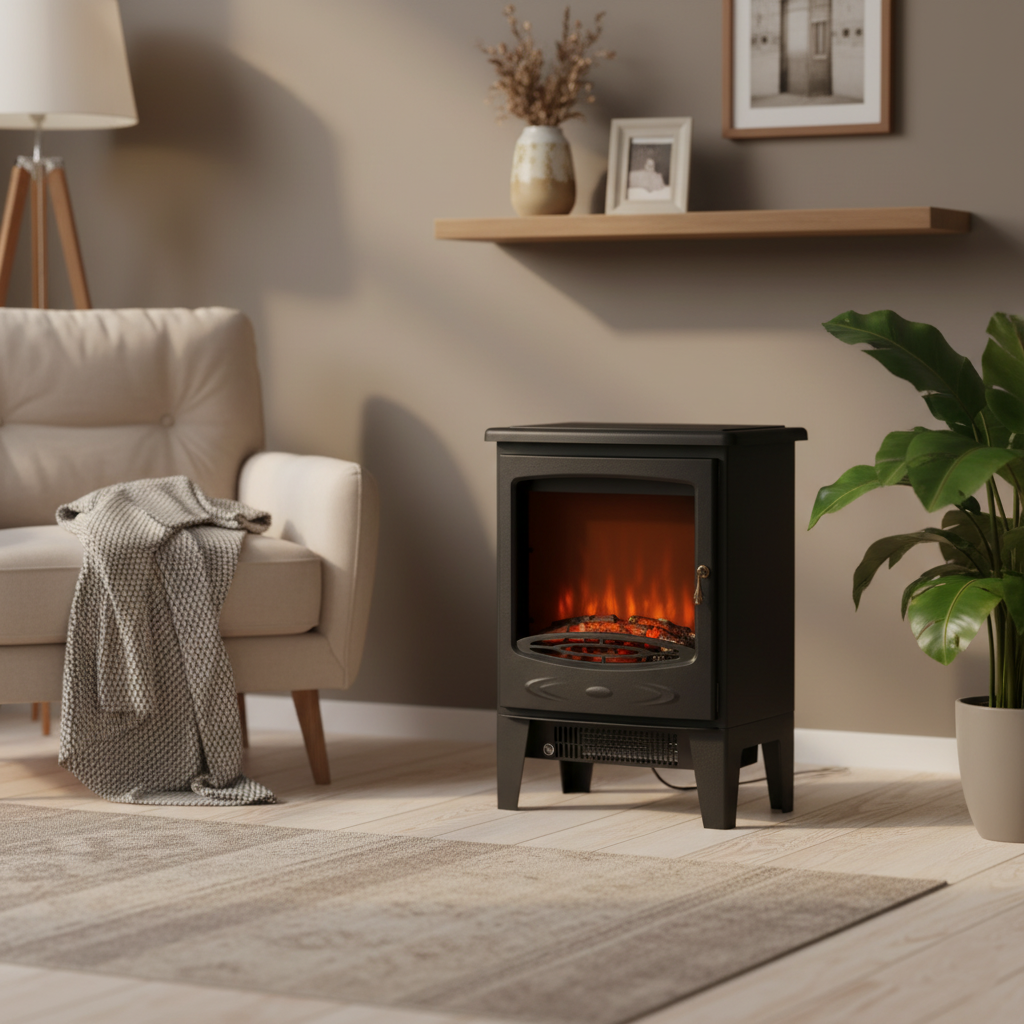 Electric Fireplace – Freestanding, 2 Heat Modes | Warm Ambiance