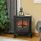 - Freestanding electric fireplace with transparent tempered glass front for better viewing