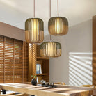 Plongez votre intérieur dans une ambiance chaleureuse avec la Suspension Ozawa Cylindre Rustique en Bois et Tissu